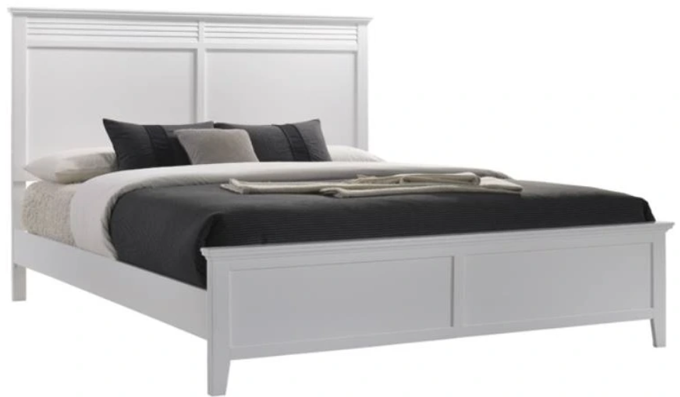 This transitional bedroom group features clean crisp lines and silver hardware with louvered panels in all pieces to give it an updated modern look. It will add style and a design element to any bedroom.Read More