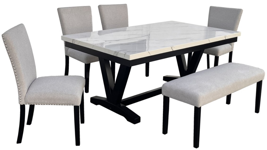 *Ding table, 4 chairs and bench only, any other products that may be displayed are sold separately. Images may not represent the actual size and color in images may differ in person. See store for actual color or finish.