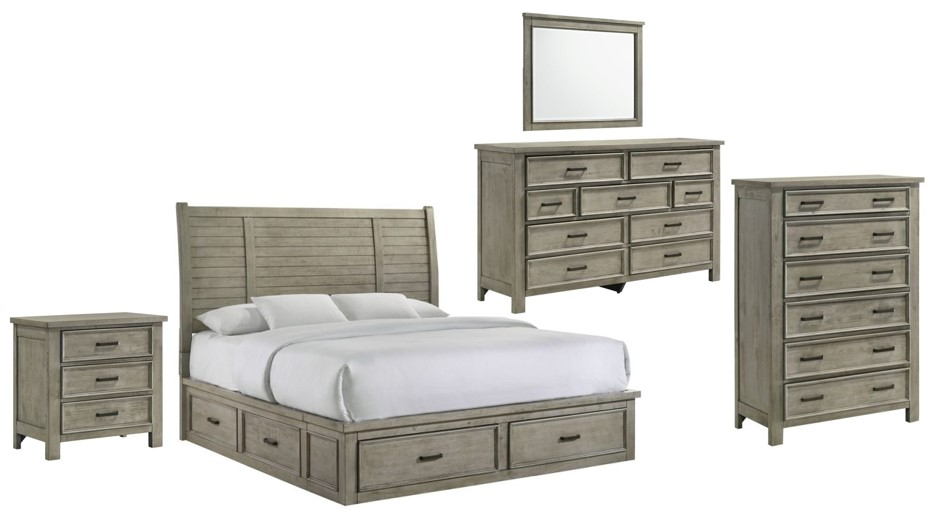Dressed in a warm gray finish, the Sienna Gray bedroom collection is the perfect addition to any room. Featuring clean lines and ample storage space, this transitional set is sure to please. The bed is simplistically handsome with a sleigh wood panel headboard.Read More