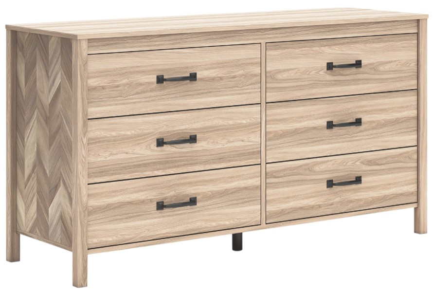 Transform your bedroom into an instant sanctuary. This dresser introduces a touch of mid-century modern style combining a two-tone finish and unique chevron pattern that is sure to enhance the design element to any bedroom. Six spacious drawers with ball bearing glides offer a smooth opening and closing of the drawers.Read More