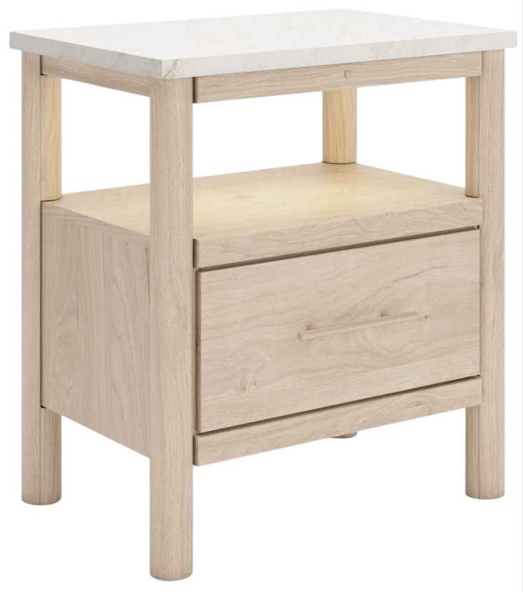 Transform your bedroom with this nightstand. With its clean lines and replicated marble top, it exudes a minimal and sophisticated boho style. Built-in lighting and charging capabilities add simplicity and ease to your everyday tasks. Tailor your space and create the perfect environment for sweet dreams.Read More