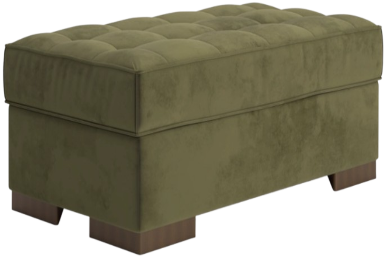 This sleek oversized accent ottoman offers a highly contemporary look with plenty of space to spread out. Dramatic tufted detailing and luxurious upholstery in a rich olive color create a sophisticated atmosphere. This ottoman is perfect for those who love to entertain, or simply relax, in uptown style and comfort.Read More