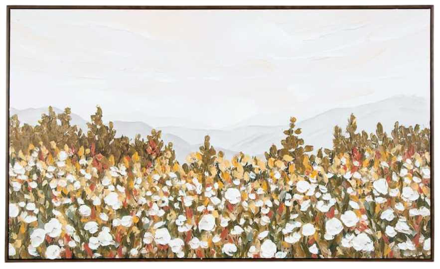 This wall art offers a beautiful contrast between a field of white flowers and the wide-open sky. A serene interpretation of the beauty of nature, its muted tones pair well with a variety of color palettes. Hand-painted embellishments complete the piece.Read More