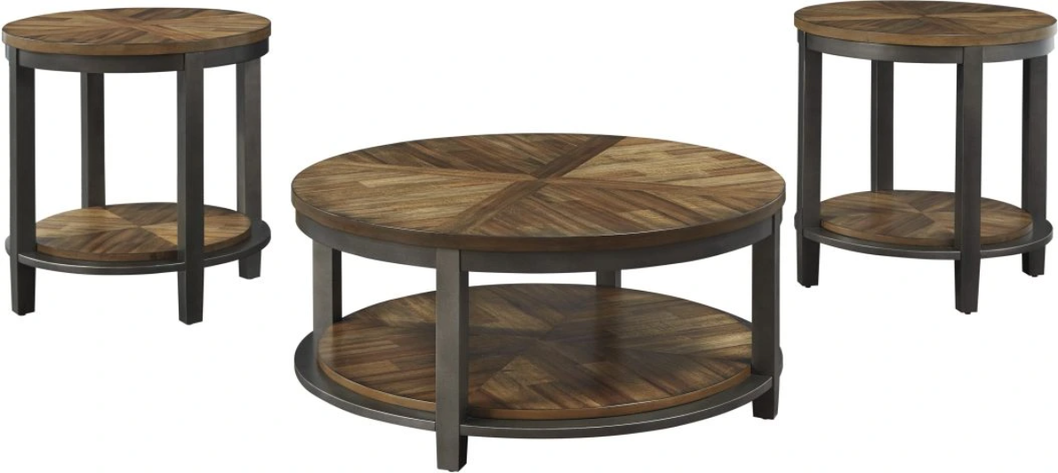 This Signature Design by Ashley® Roybeck accent table set combines modern appeal with the rustic qualities of wood for a striking design. Beautiful butterfly-patterned veneer transforms the everyday in an extraordinary way.Read More