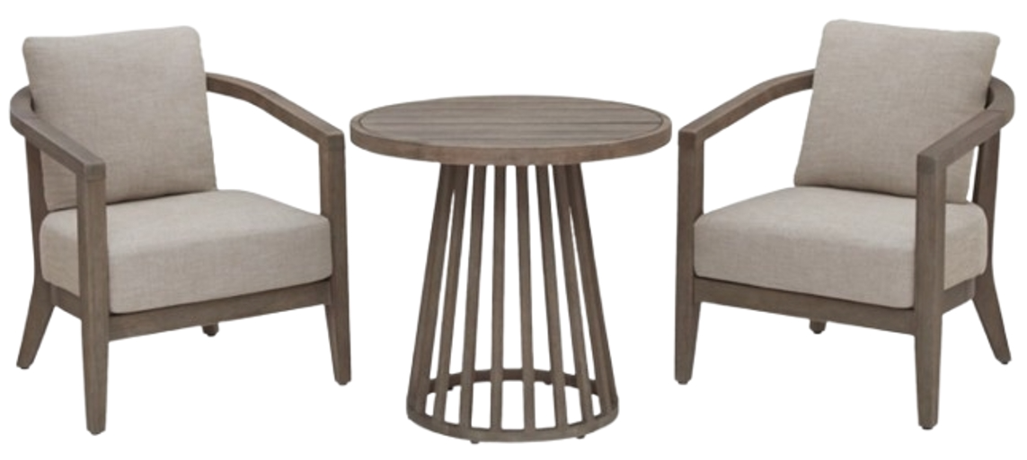 Turn an outdoor space into your own private oasis with this 3-piece cafe set. The essence of easy-breezy outdoor living, the brilliantly styled table and chairs are quality crafted with durable eucalyptus wood. Cushions are wrapped in high-performance Nuvella® fabric, so it's delightfully easy to keep them clean and vibrant.Read More