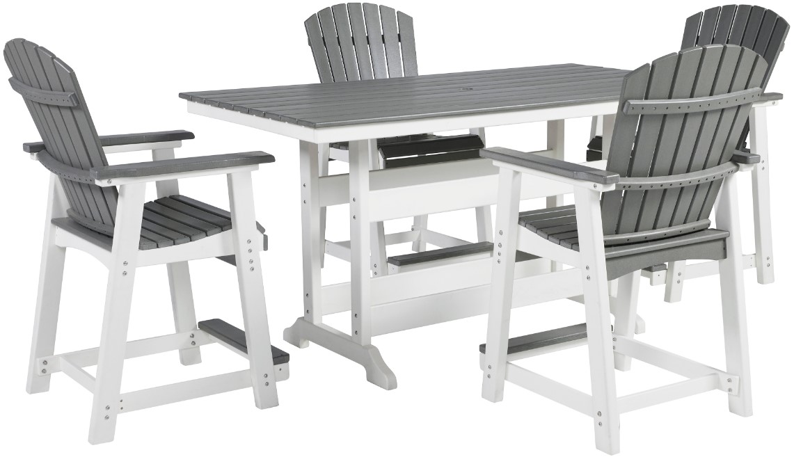Raise the bar on outdoor living with this 42" dining table. Crafted for style, comfort and MEGA TUFF™ durability, it caters with a standout two-tone look that pairs gorgeous gray and crisp white for twice the interest. The table's counter height design elevates the aesthetic. An Umbrella hole lets you throw some shade on your outdoor living space.