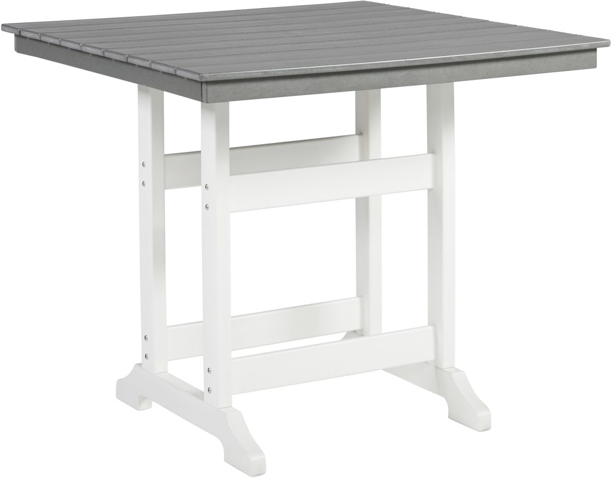 Raise the bar on outdoor living with this 42" dining table. Crafted for style, comfort and MEGA TUFF™ durability, it caters with a standout two-tone look that pairs gorgeous gray and crisp white for twice the interest. The table's counter height design elevates the aesthetic. An Umbrella hole lets you throw some shade on your outdoor living space.Read More